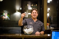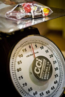 Dr. Stafford weighs it. (Thanks, New Seasons for sharing your calibrated instrument with us!)